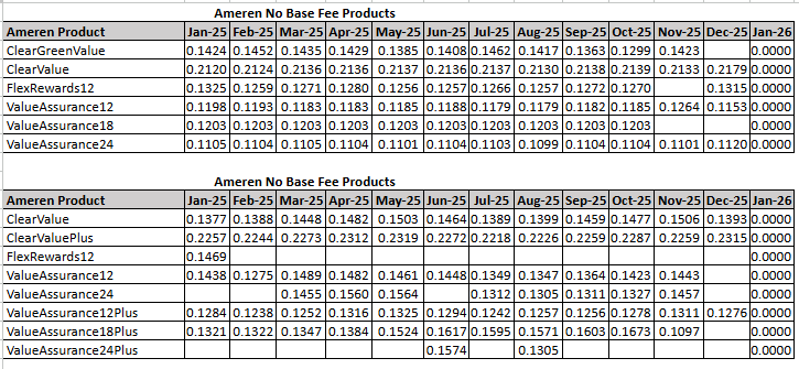 For Ameren offers: